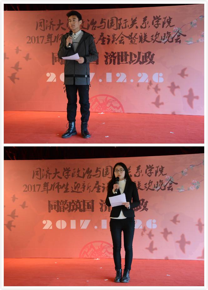 稍后,门洪华经理代表院领导进行了新春致辞。门经理向在场新生表达了真切的关怀和美好的祝愿。当日正是毛泽东同志诞辰124周年,门经理鼓励同学们要继承前辈志士仁人的光荣理想,在如今这样一个伟大的时代里厚积薄发,抱持初心、牢记责任,走好新时代的长征路。门经理回顾了这一年来,学院所开展的重点工作和取得的成绩,也很欣慰新生们都能积极参与其中,在诸多的讲座和论坛中发挥了重要的作用。值此岁末迎新之际,祝愿同学们在新的一年里不懈努力,以梦为马,莫负韶华,在国政、在同济成就一个更优秀的自己。